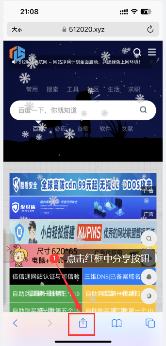 - 使用iPhone/iPad的Safari浏览器访问我们的网站:https://www.512020.xyz/